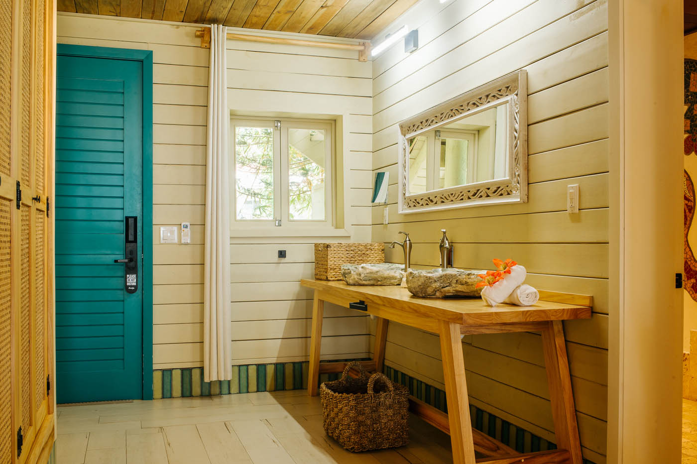 This is a great room for a couple or small family that appreciates comfort, a view of the sea, and privacy. The room has a wonderful, elegant bathroom, a large shower cabin and two queen size beds, which sleep up to four guests in total. The room has been recently renovated according to the design of a leading European architecture office.