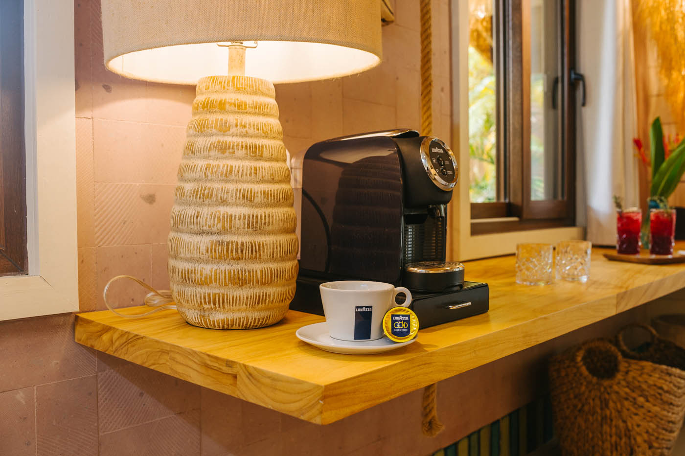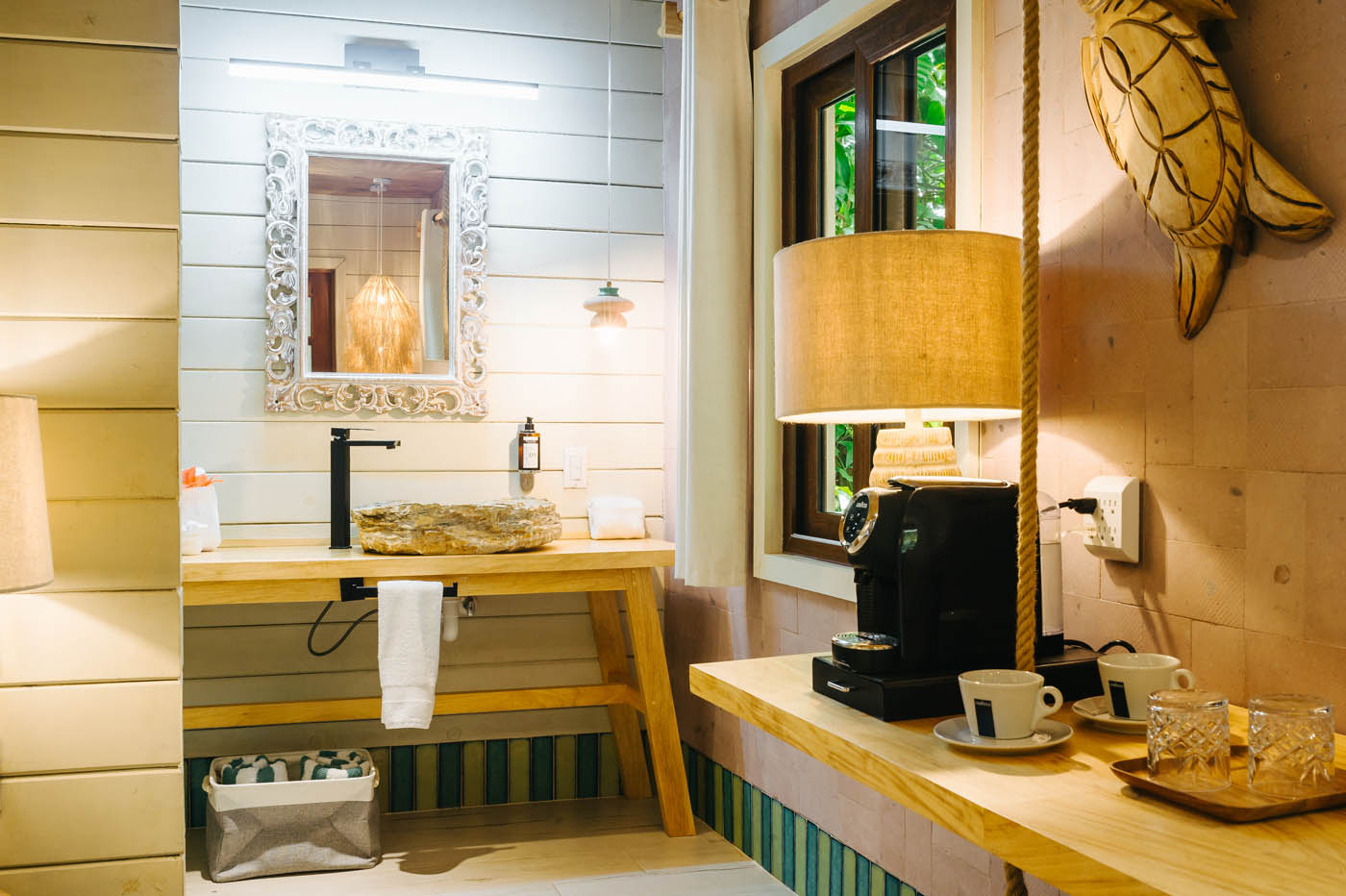 A comfortable queen size bed, a view of the tropical garden with humming birds fluttering about and a hammock on the terrace; these are Tortuga’s main advantages. The room is perfect for independent travellers and adventurers.